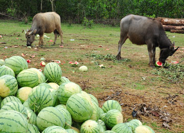 Dưa hấu, hành tím, hành tây... là những nông sản rớt giá mạnh trong vụ mùa năm nay, khiến nông dân các tỉnh miền trung và Đà Lạt lao đao.